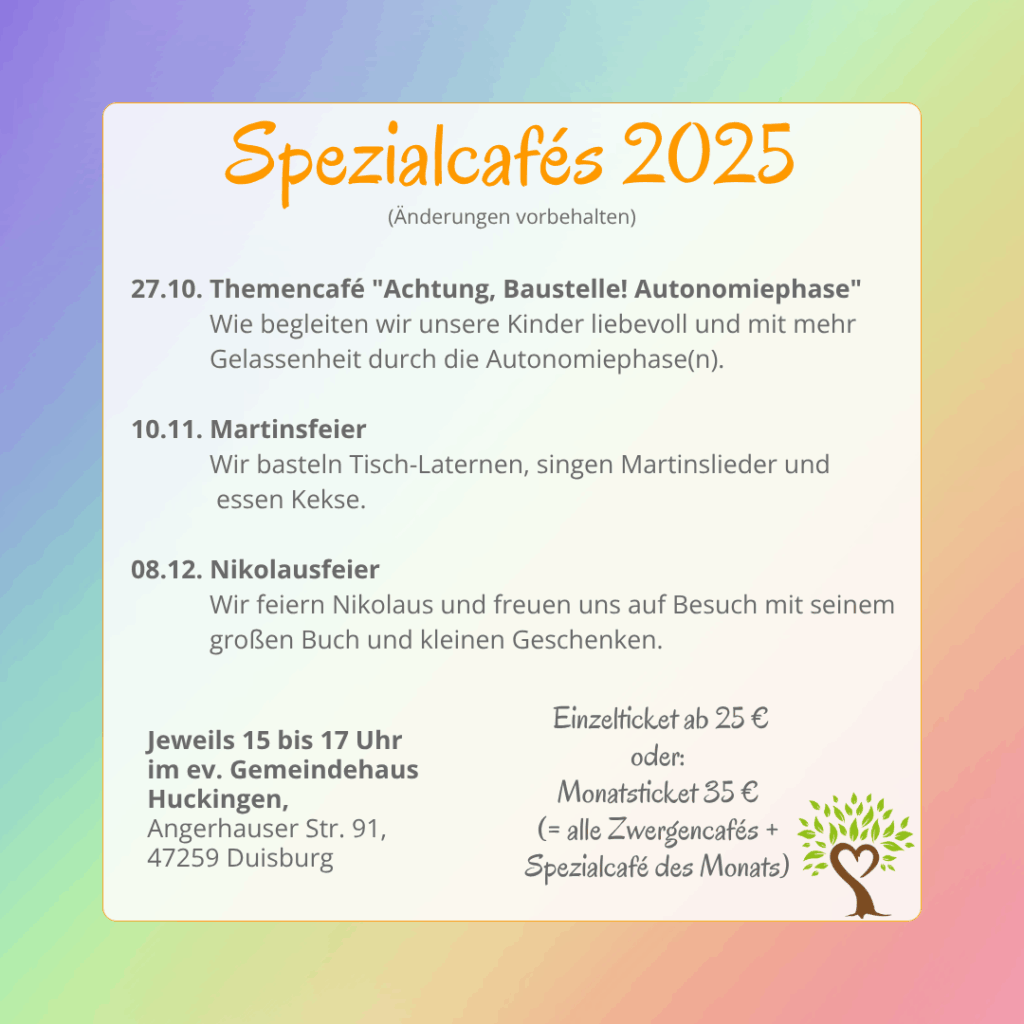 2025 laden wir euch nicht nur Montags zum Zwergencafé ein, sondern auch 1 mal im Monat zu einem Spezialcafé ein.